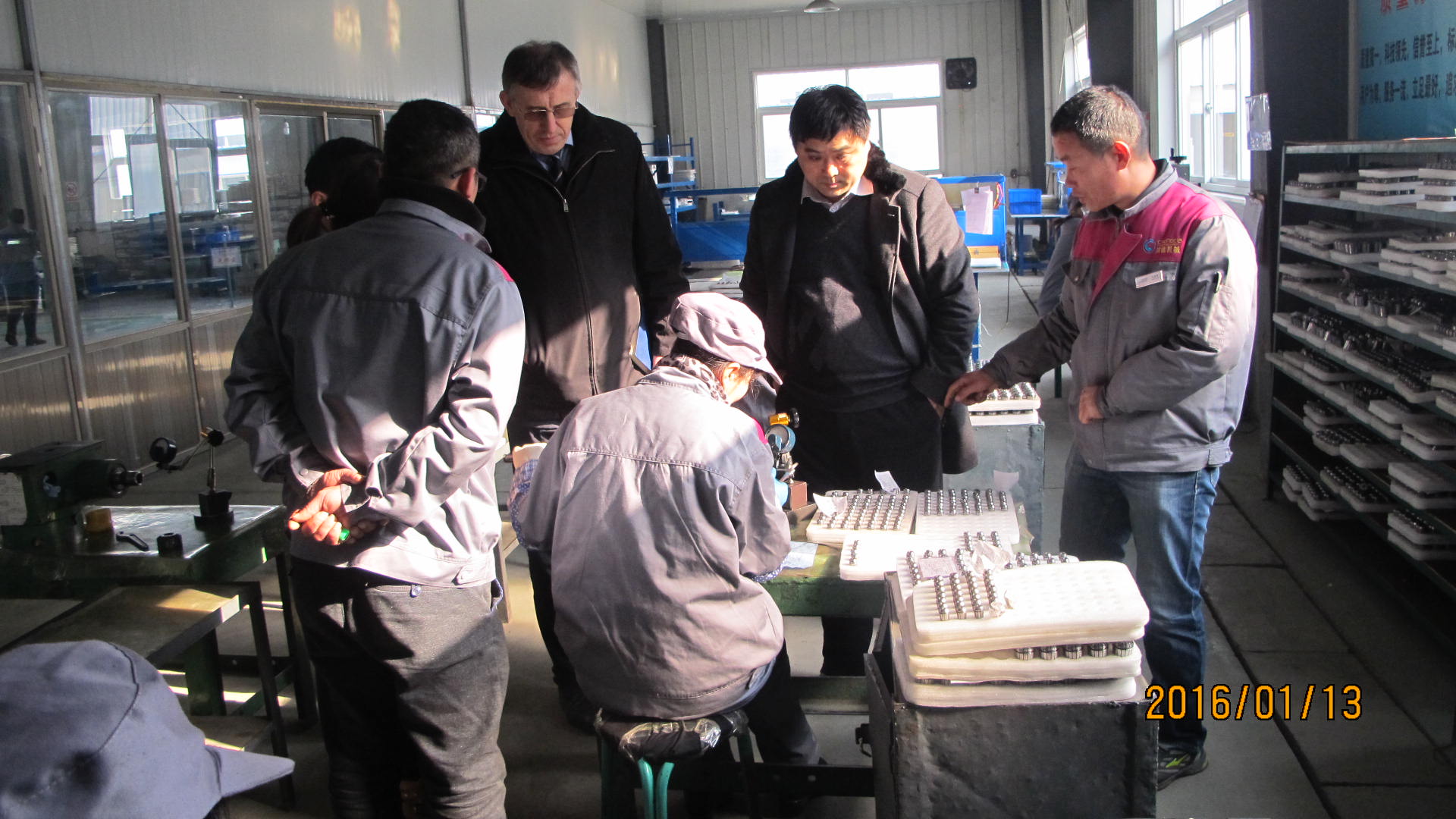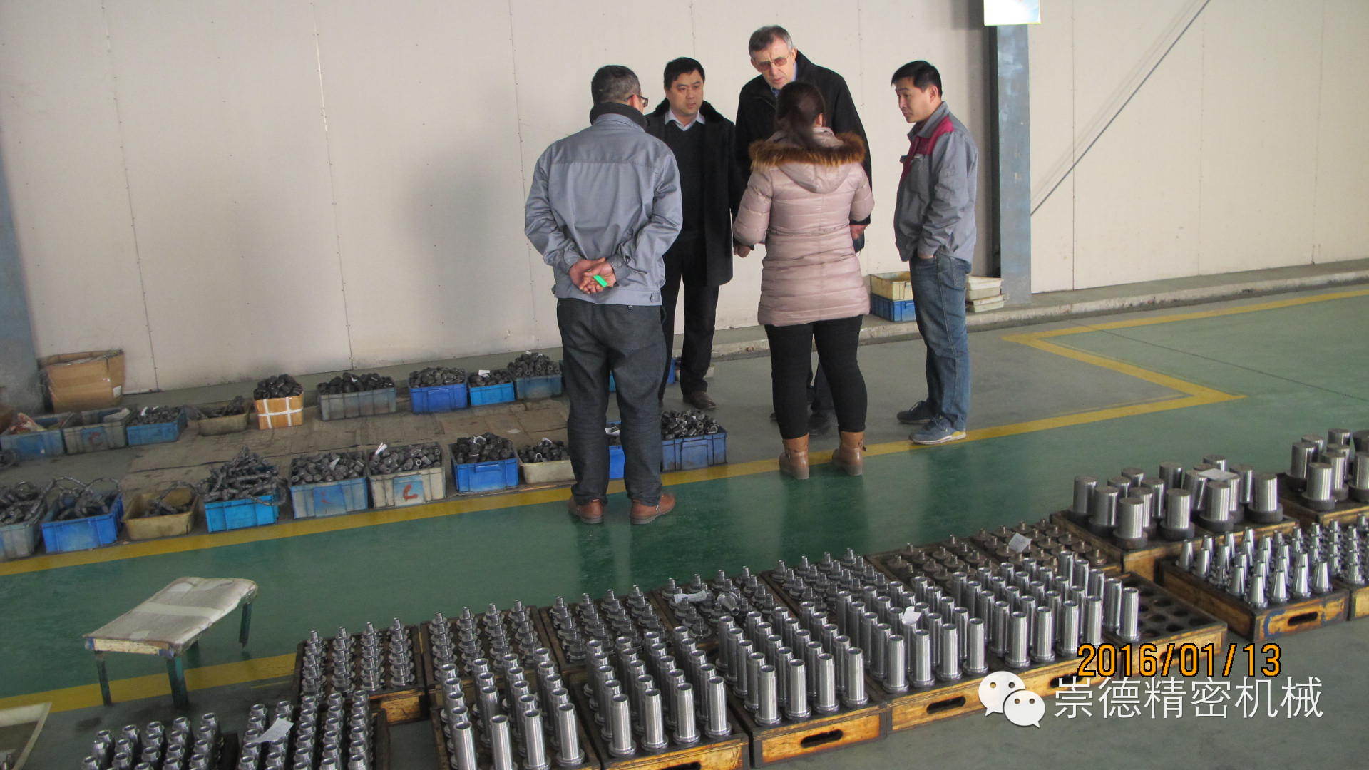 1.13日上午十點,俄羅斯客戶應約抵達崇德。總經理帶領崇德高管熱情迎接,還沒等緩解一路的車馬勞頓,我們這位外國友人就迫不及待的想要參觀一下崇德公司。他說他想認真看看崇德產品,在意大利展會上他對我們的產品非常滿意。